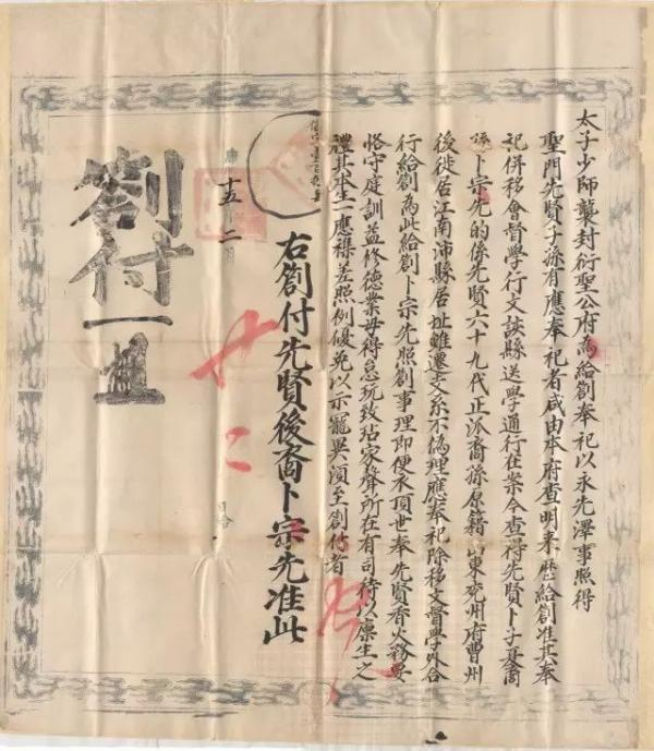 是清代执照文凭的一种,是孔府为证明执有人的身份而颁发给有关人员的证明文件。
