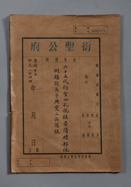 明六十五代衍圣公孔胤植咨请礼部依例题授长子兴燮二品冠服,孔子博物馆藏