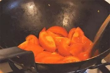 注意番茄要炒到略软,蛋却不能久炒。在没有很多油的情况下,蛋炒老了失水自然显少。