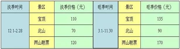 淡季:每年11月15日—次年1月15日,普通票:140元;优惠票:70元。