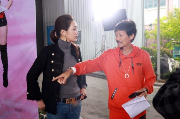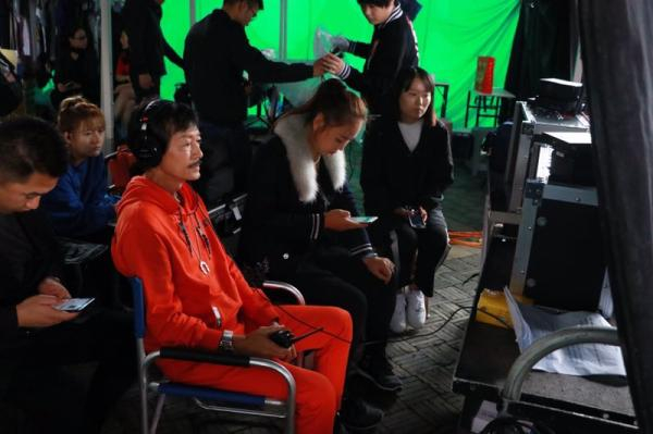 坐在监视器前的陈勋奇导演身穿一套橘红色的运动衫,衣服背后印着一个大大的“NEW”。监视器里,那广子和孟广美正在走位,还没有轮到出镜的马国明和谭耀文坐在不远处翻看剧本。