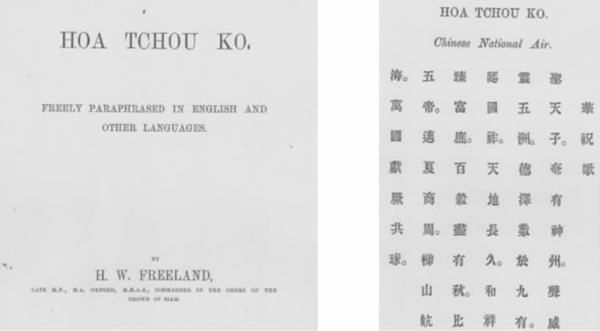傅澧兰《华祝歌》原词(来源:Hoa Tchou Ko, Chinese National Air, freely paraphrased in English and other languages)