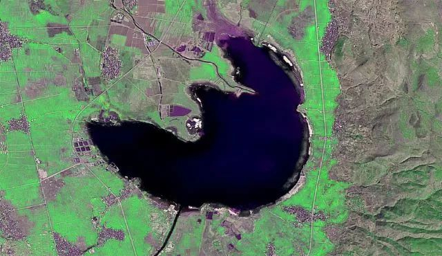 “我是个宝宝”——剑川剑湖卫星遥感影像上的大理州剑川县剑湖上去像是一片月牙,给人一种圆润的美感。加上旁边笔直的阡陌、错落的村庄以及绿油油的田野的包围,剑湖又像是一个正在孕育中的“宝宝”。