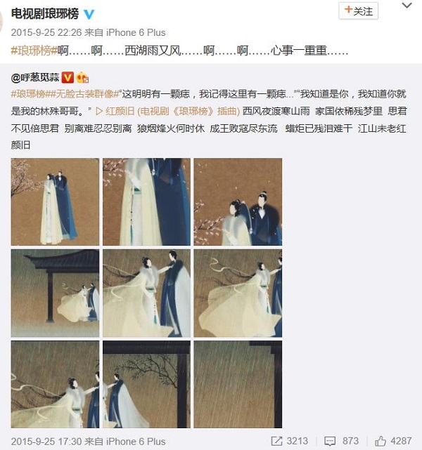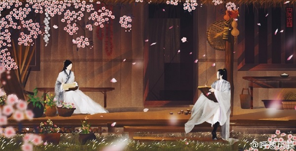 2015年,《琅琊榜》热播,微博上一组以《琅琊榜》为灵感的无脸古装人像插画点赞无数,还得到官方微博认可。这组插画的创作者,就是呼葱觅蒜。