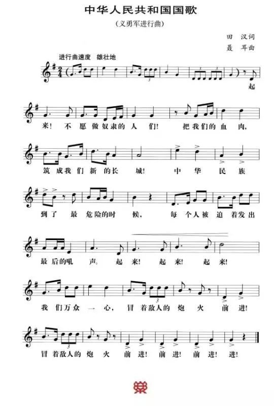 义勇军进行曲五线谱(来源:中国政府网)