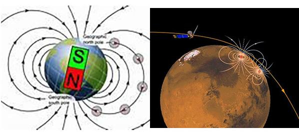 地球磁场(左) 、火星磁场(右)