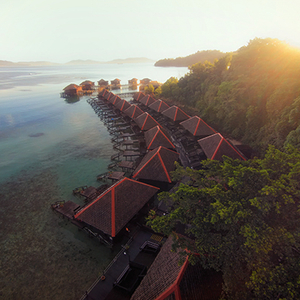 度假村坐落在一片苍翠繁茂的珊瑚礁岸上,与京那巴鲁山隔海相望。除了52间水上别墅之外,度假村还拥有中式海鲜餐厅、西餐厅、水疗中心及酒廊等附属设施,访客入住期可参加免费的浮潜、皮划艇项目,或在向导及潜水教练的帮助下体验水肺潜水、跳岛、森林远足等各项活动。