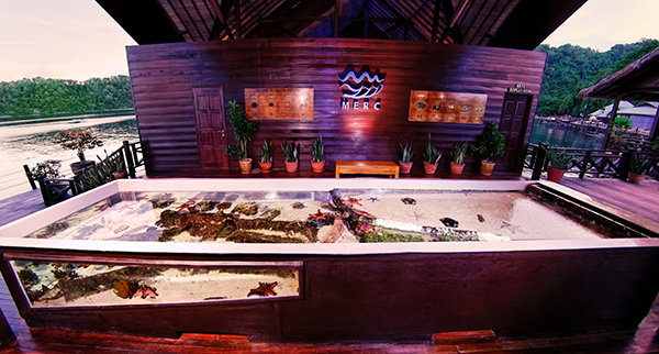 在2005年,与Gayana Marine Resort同期筹建的还有一个以独立资金运作的海洋生态研究中心(MERC),具体位置就在栈桥的尽头。海洋生态研究中心设立的初衷是为了保护各种因气候暖化和海洋污染而濒临灭绝的海洋生物,尤其是婆罗洲近海特有的巨蚌和珊瑚礁。听说,度假村的主人对于自己孩提时代看到的清澈海水,怀有相当深的执念,在他的提案下,马来西亚首间人工珊瑚礁繁殖基地及环境教育基地得以成立。