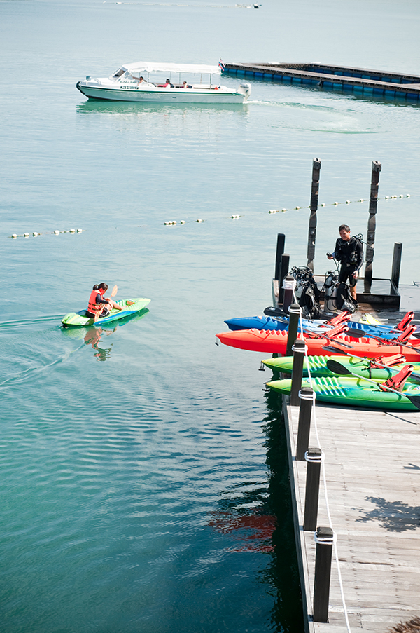 无论你是否谙熟水性,都该试试免费的独木舟和浮潜项目。我以一个“过来人”的身份保证,任何人都不会失望而归。说起来,我也试过不同地方的潜水项目,包括冲绳、大堡礁、苏门答腊岛的偏远岛屿,但加雅岛的水下资源同样让人感到惊艳——水质清澈,鱼群和珊瑚的颜色、品种十分丰富,我很想说,它们只是某种CGI特效,被包装成了3D实景的样子。最好的潜点之一就在度假村码头前面,我曾在这里看到无数明亮的小丑鱼,还有海鳗蜷缩在珊瑚丛中休憩的样子。