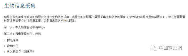 所以业内人士认为,签证中心11月2日开始新的收费标准即意味着要开录指纹了。但登录加拿大 IRCC (移民、难民与公民部,即原移民部)网站查询签证相关要求http://www.cic.gc.ca/english/visit/biometrics.asp ,目前尚未正式通知对中国境内签证申请者要求采集生物信息。