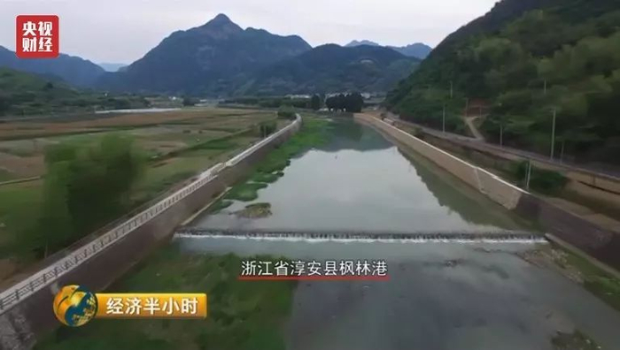 淳安县西南部山区的这条河叫枫林港,是淳安县境内的四大流域之一,枫林港发源于淳安的第一高峰磨心尖,全长48.21公里,最终汇入千岛湖。沿着枫林港行走,既可以领略到峡谷瀑布的雄奇、又可以感受到江浙一带小桥流水的静谧。在枫林港流经的这个小村庄,村里的老书记兼河长姜银祥,戴着草帽、穿着高筒雨靴,正在河道里忙着进行巡查。