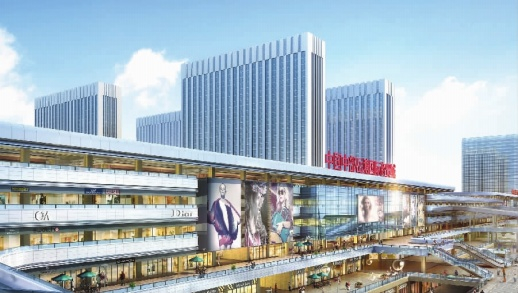 中国(中部)岳塘国际商贸城一期效果图。