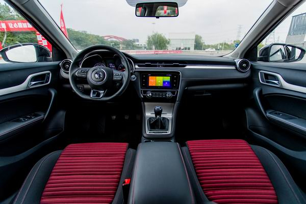 进入车内,能感受到更为浓烈的运动氛围。红黑配色的织物座椅是Trophy车型所独有的,配合上方向盘与中控台上的红色缝线,提升了整车的竞技感。Trophy车型与普通版车型最大的不同,就是中控台上那个6速的手动变速箱挡把了。据名爵官方称,这款代号为SCM250的6速手动变速箱采用了三轴设计,传动效率可达97%,且结构紧凑、质量较轻。实际操作中,这款变速箱的挡位清晰,换挡行程较短,离合器踏板行程也比较适中,宽容度不错。不过换挡缺乏吸入感和离合器踏板稍沉可有些美中不足。