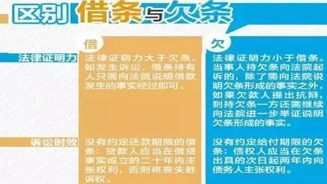 借条和欠条是不同,两者在都没有注明还款日期的情况下,借条的法律时效性是20年,而欠条的法律时效性是2年。
