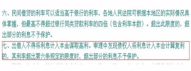 举个例子。如果出借人和借款人之间规定的利息是30%。如果借款人已经把30%的利息支付给了出借人,那在诉讼中借款人要求出借人返还6%的利息时,法律上是不予支持的。但是如果借款人只支付了24%,这个时候出借人要求借款人支付剩下的6%利息,法院也不会支持出借人的请求。