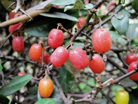 羊奶果学名密花胡颓子,椭圆形,色红如血,略大于鸽卵。