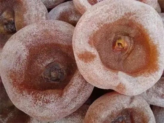 柿饼长得不好看,表面一层厚厚的白霜。