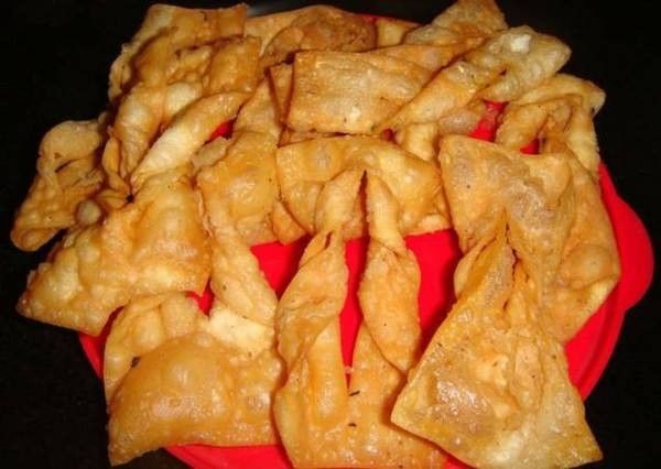 过年的时候,很多人家里都会做糖饺子。做法很简单,就是一张方形的面皮中间划一刀,然后翻几下,然后油炸,出锅的时候撒上一些白糖,所以叫做糖饺子~它吃起来很酥脆,特别是刚出锅的~经常是母亲一边炸,我们一边偷吃,有时候还会因为偷吃而不小心烫了嘴。