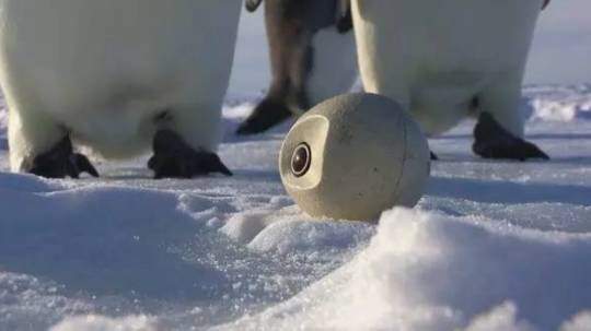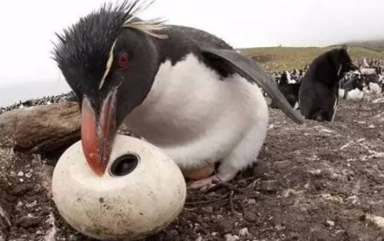 人造“爬行企鹅”摄像头被同类围观,怕被识破,还下个“蛋”来掩饰:
