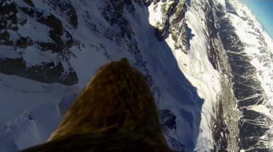 制作组驯化了一只名叫Slovak的老鹰,将小型的GoPro绑在它的身上,让它飞越阿尔卑斯山。