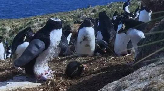 惹得“好管闲事”的企鹅来查看蛋怎么还没孵出来。