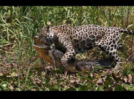 譬如,美洲豹猎杀巨型鳄鱼。