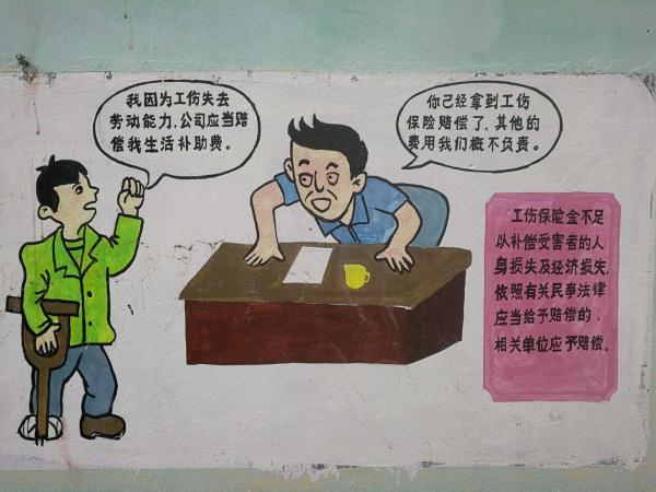 熊为义画在村里墙壁上的法制宣传漫画。沈梦雅 图