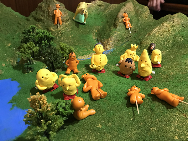 摆满观众diy面塑小泥人的沙盘