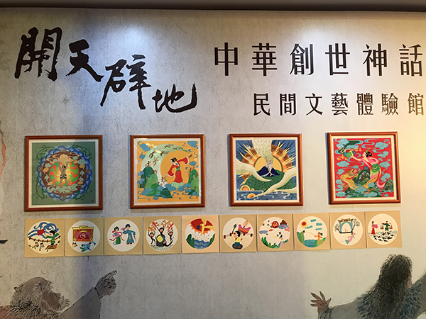 民俗体验馆中以创世神话为题创作的金山农民画作品