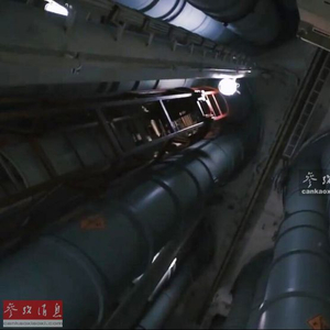 图中可见记者与导弹发射筒的尺寸对比,凸显发射筒的巨大。