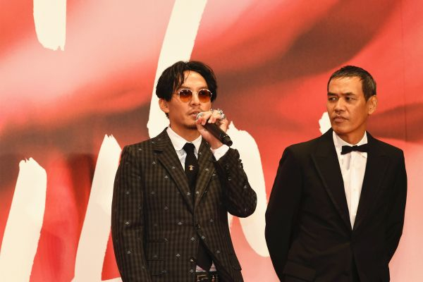 10月25日,在日本东京,中国演员张震(左)和日本导演萨布走红毯并致辞。 新华社记者 华义摄