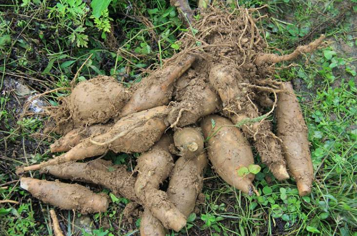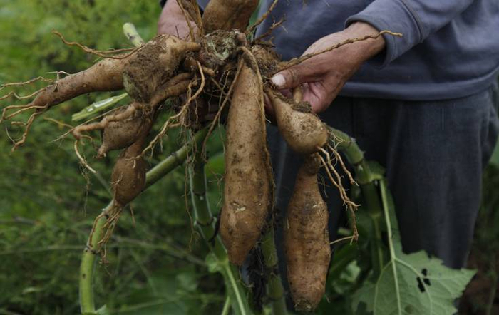 时下又是雪莲果收获的季节,村民们在地头里忙得热火朝天,锄头落下,手使劲薅一把,一棵藤上七八个雪莲果全都拽出来了!长时间弓腰驼背的辛苦也丝毫妨碍不到他们因丰收而露出笑脸。