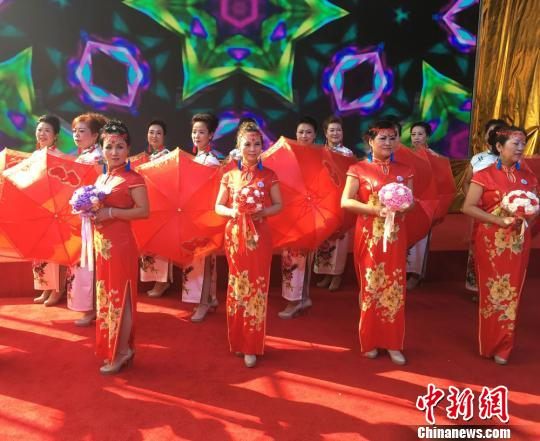 10月26日,兰州举办了首届千叟宴民俗旅游文化节活动,一支老年模特队表演了“旗袍秀”,为台下的同龄观众献上重阳节的礼物。 杨娜 摄