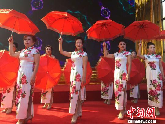 图为模特们身穿火红的旗袍。 张婧 摄