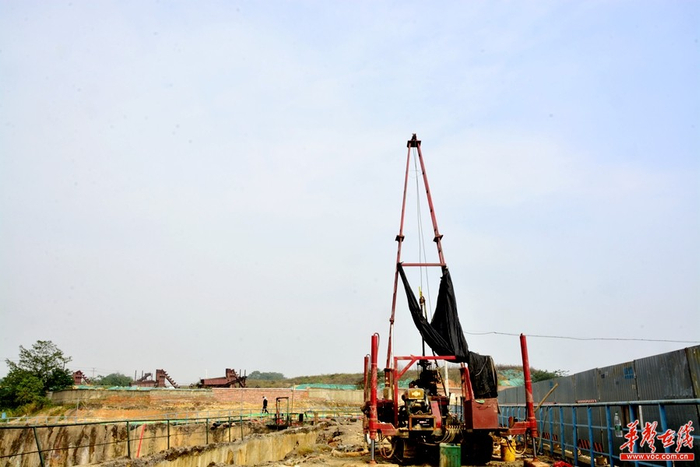 10月26日,长沙原铬盐厂工地上,钻机正在进行取样作业。记者 龙腾 摄