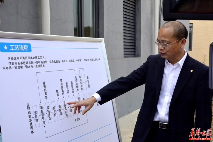 长沙市铬污染物治理有限公司副总经理王卫斌介绍含铬废水处理工艺。