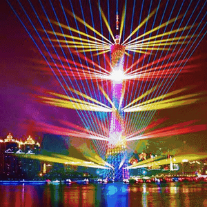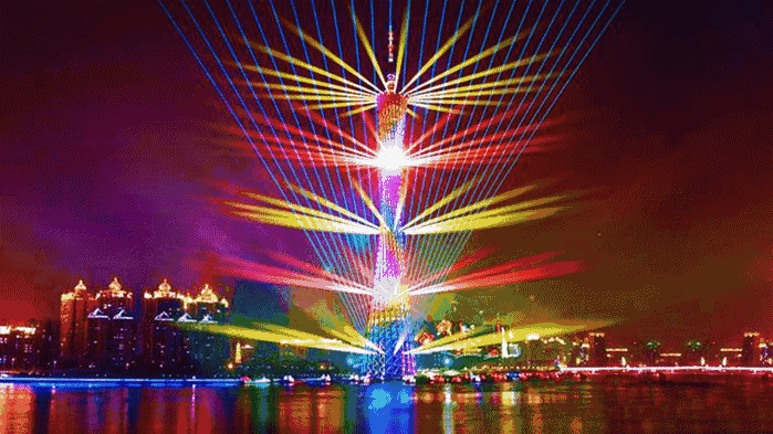 广州塔灯光秀点亮广州夜空通过激光束在以广州塔为中轴线的高层建筑之间来回穿梭,配合南广场灯光,寻找建筑之间的联系,建构建筑间的对话,形成绚丽壮观的城市空间景象。广州塔灯光秀将会是全中国最大的灯光作品。