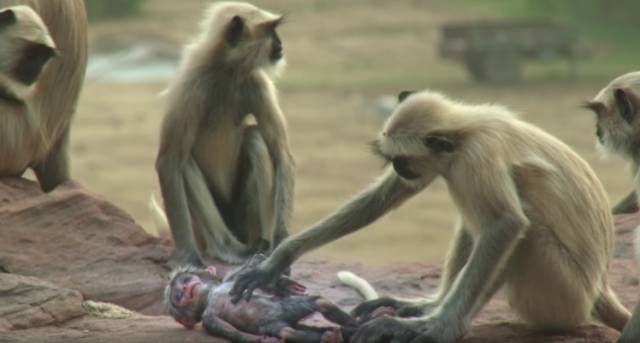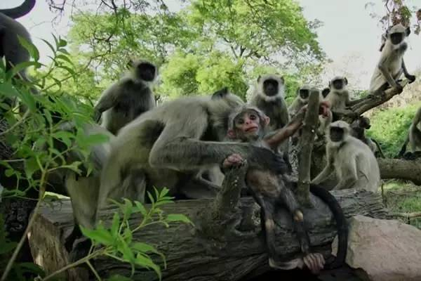 应该是印度猴群与一只猴子卧底的相遇