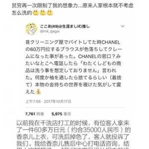 最近,有个帖子火了:一个女生买了件35000块的香奈儿上衣, 拿到洗衣店洗过之后掉了色,忿忿不平地追问客服,得到的回复是:这产品设计时根本没考虑过要洗,一般都是穿几次就要丢掉。