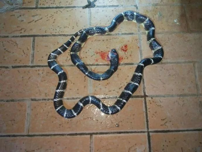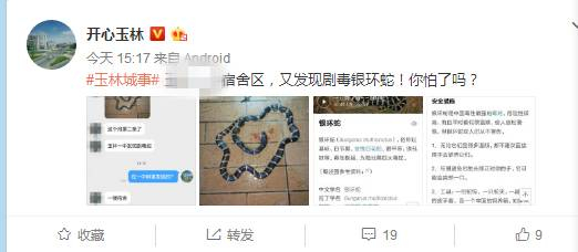 网友爆料称:玉林某中学男生宿舍进来一条剧毒的银环蛇!而且这已经是这个月进来的第二条了!