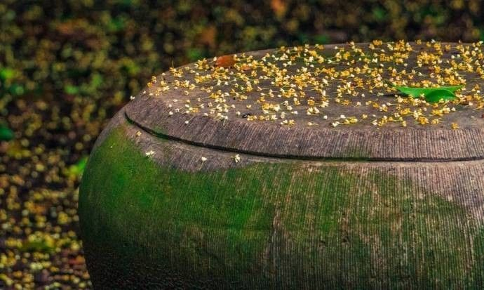 ▲不知风吹 或是雨打 灵谷塔下桂花一地