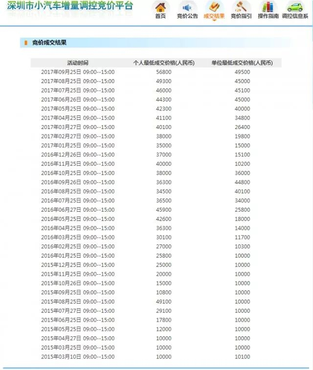 2017年第10期深圳市小汽车增量调控竞价结束,