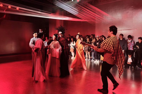 现场还出现神秘的四个“黑衣人”隐藏在观众身边,成为观众和演出之间一条无形的连接线,让观众不自觉跟随“黑衣人”进入演出,成为演出的一部分。