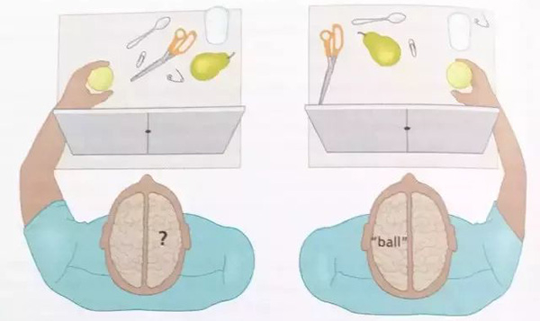 其中,有一个实验广为人知。在实验中,裂脑人的视线被遮挡屏挡住,然后让他分别用左手和右手,去触摸识别遮挡屏后的物体。