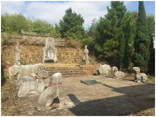 沿着碎石小路一路向前,郑荣良带领记者来到了荥阳侯夫人墓。由于多年的风吹日晒雨淋,墓碑上的字迹已经看不真切,但是通过两侧的天官石人、石马、石羊、石虎,还能依稀感受到墓主人曾经的位高权重。