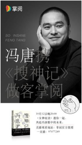 中新网10月26日电 近日,冯唐做客掌阅,超过150万人线上观看了这次分享,对于喜欢冯唐的人而言,掌阅APP上冯唐的新书《搜神记》将是一番新的体验。