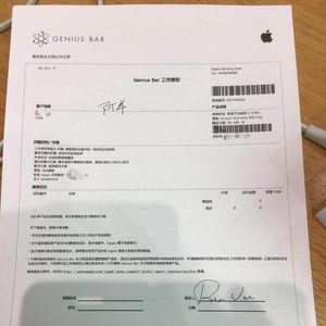 苹果公司售后对该设备维修信息的记录单。 受访者供图
