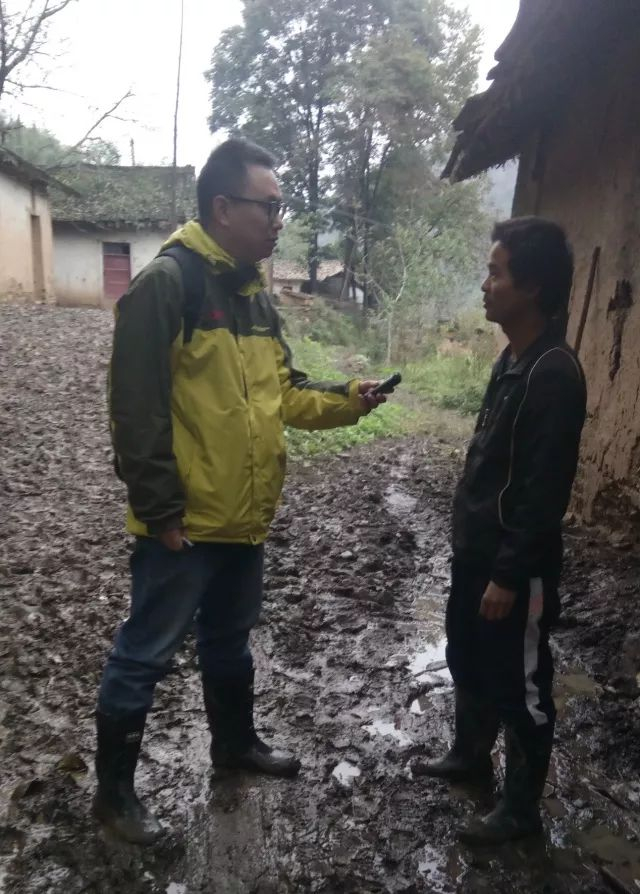 图片里这位记者叫刘涛。请注意这满地的泥泞,还有他脚上那双高筒的黑雨鞋。