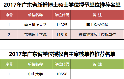 此外,南方科技大学和东莞理工大学获得广东省新增博士硕士学位授予单位推荐,中山大学获得广东省学位授权自主审核单位推荐。
