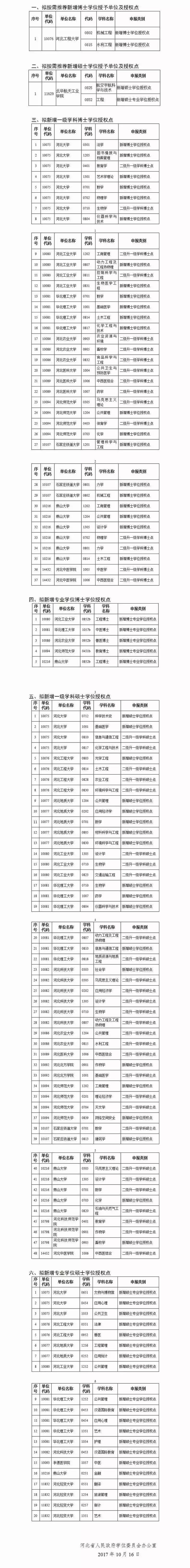 经审议专家组评议,河北省确定河北工程大学和北华航天工业学院两所高校,作为河北省新增博士、硕士学位授予单位,向国务院学位委员会推荐参加复审。公示时间为2017年10月16日--2017年10月20日。